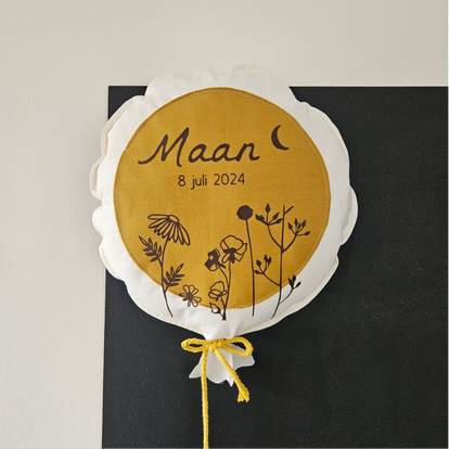 Wil je een stoffen ballon laten maken die gebaseerd is op het geboortekaartje? Ook dat is mogelijk (tegen meerprijs)!